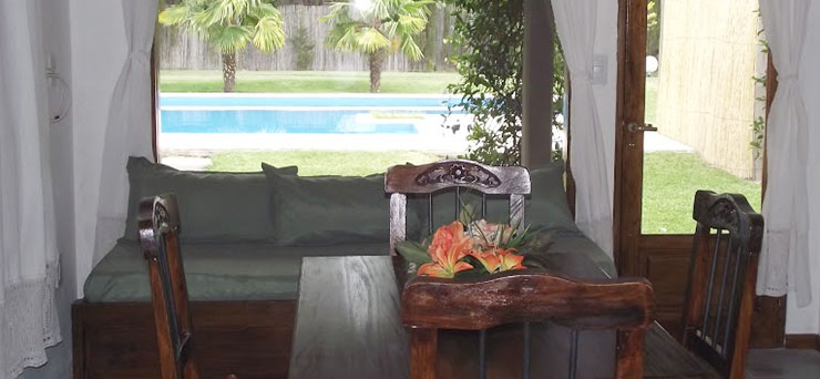 Dos cabañas con arquitectura moderna en un amplio parque con piscina. Un lugar rodeado de naturaleza, muy tranquilo y exclusivo. Pensado para el descanso, con cómodo acceso de vehículos. A 1.000 m de los principales accesos turísticos a Cañón del Atuel, El Nihuil, Las Leñas, Valle Grande y circuito de Bodegas. Un ambiente familiar a 5 minutos del centro de San Rafael y de la zona de restaurantes, supermercados y estaciones de servicio. Las cabañas son espaciosas y están totalmente equipadas.